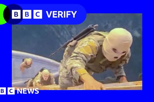 Iranian state media have shared footage appearing to show the Islamic Revolutionary Guard Corps boarding two cargo ships in the Strait of Hormuz. The video shows small boats carrying masked and armed men approaching the MSC Francesca and the Epaminondas. Analysis by BBC Verify indicates that parts of the video appear to have been filmed…