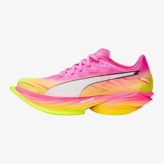 Puma has the receipts to prove it: lab tests show these improved running economy against every shoe on test. And not just for gifted elite runners, either – everyone tested showed better running efficiency thanks to their unique midsole setup with a cutaway heel, extended plate and lightweight design.